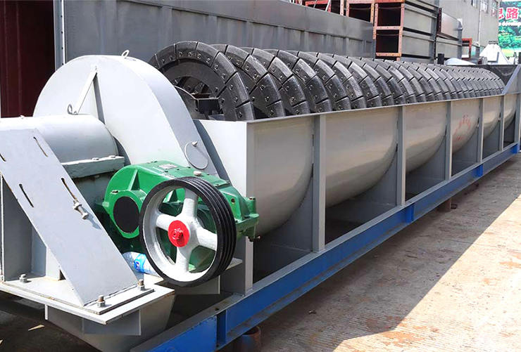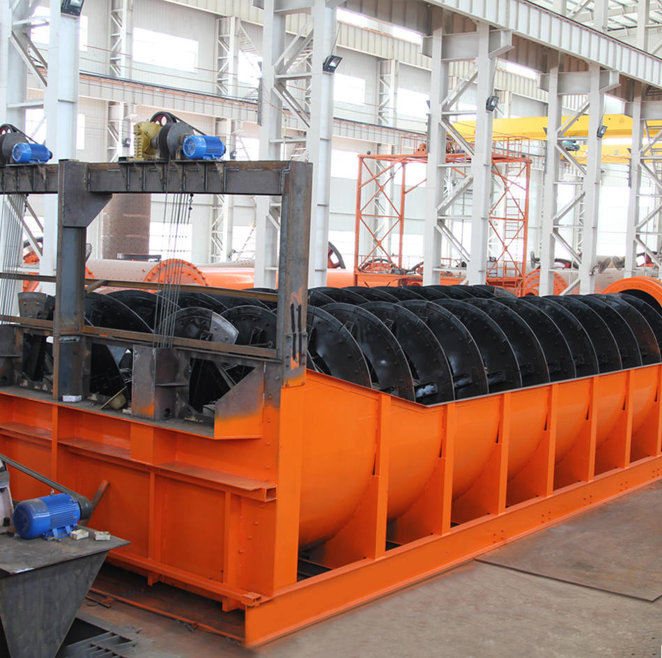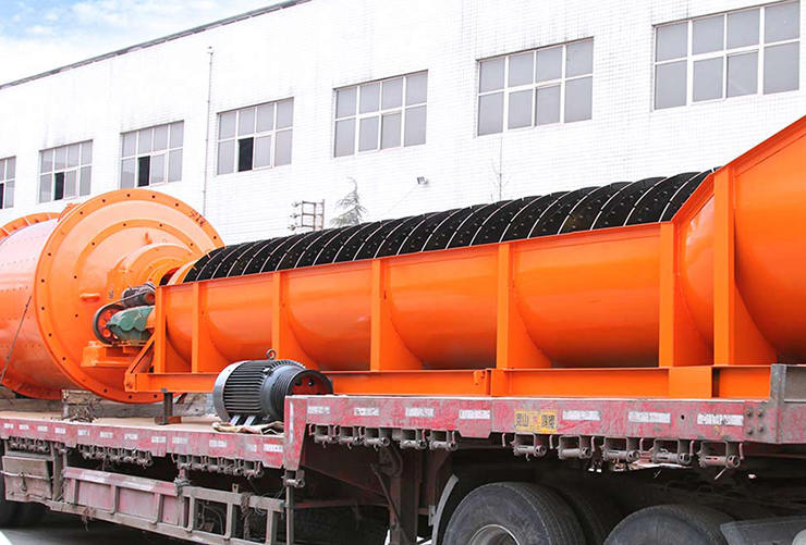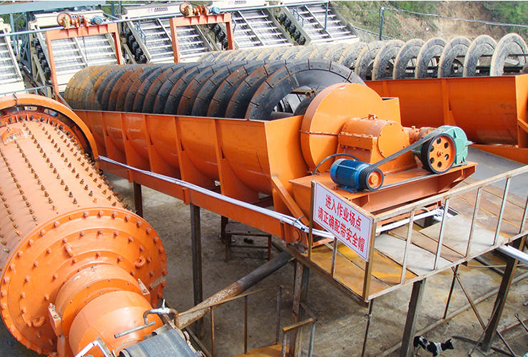 螺旋分級(jí)機(jī)在選礦作業(yè)中與球磨機(jī)配成閉路循環(huán)流程,將合乎粒度 大小要求的礦物作為成品從溢流端排放到下端工序,將粗砂送回球 磨機(jī)中再磨。