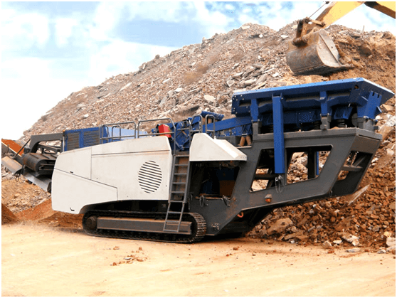 移動破碎站正在處理建筑垃圾
